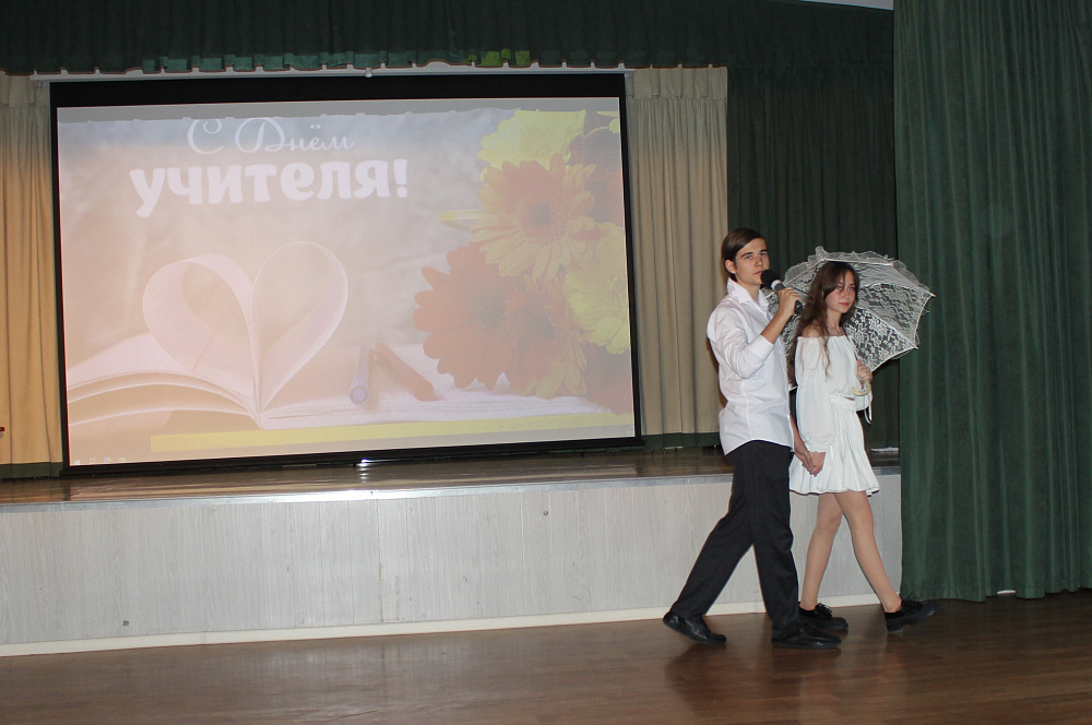 День сегодня особенный – это праздник, наполненный уважением, признанием и благодарностью ко всем учителям. С раннего утра по радио звучали песни и стихи, а воспитанники 5 класса с улыбками и воздушными шарами встречали педагогов у входа в лицей. На 4 и 5 уроках лидерами самоуправления были проведены веселые занятия для учителей, а на это время педагогов заменили дублеры из 10 и 11 классов. И дети, и взрослые получили большое удовольствие и эмоциональный заряд от таких уроков. Затем состоялся праздничный концерт! Слова благодарности, стихи, гимнастический этюд и вокальные номера, исполненные на сцене, создали атмосферу торжественности, вдохновения и восхищения.